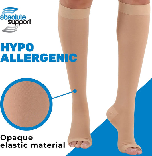 ABSOLUTE SUPPORT Medical Compression Socks for Women & Men 30-40mmHg, Open Toe, Made in USA A311