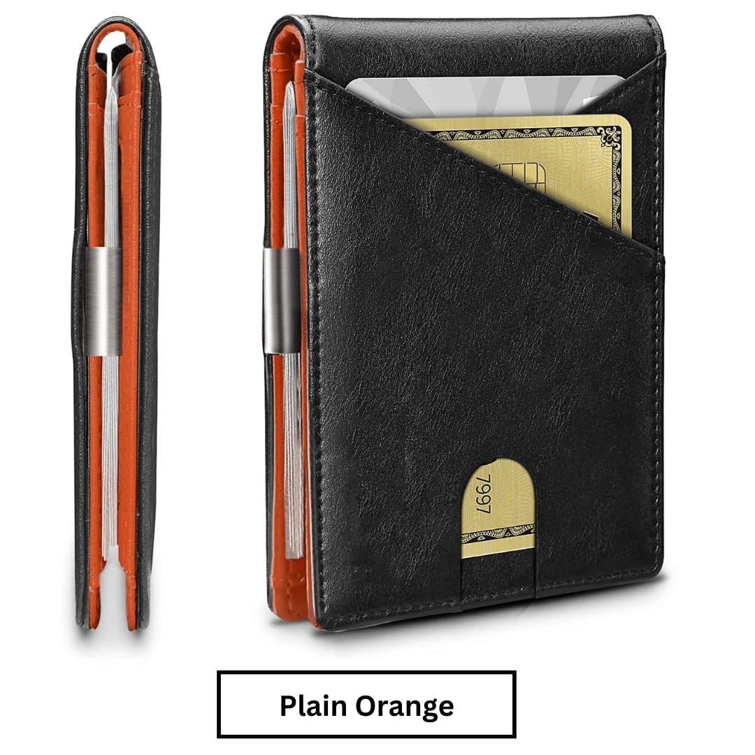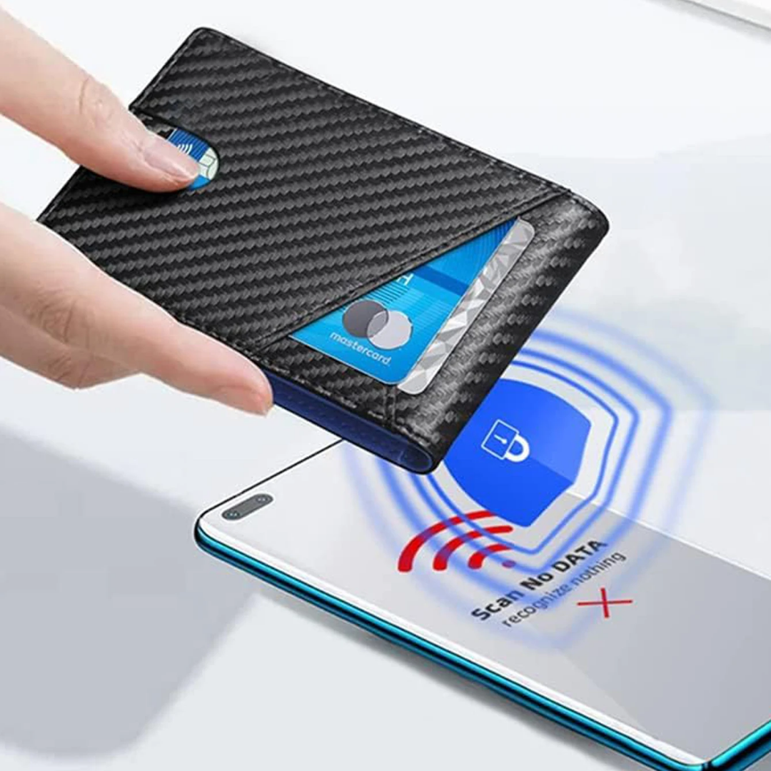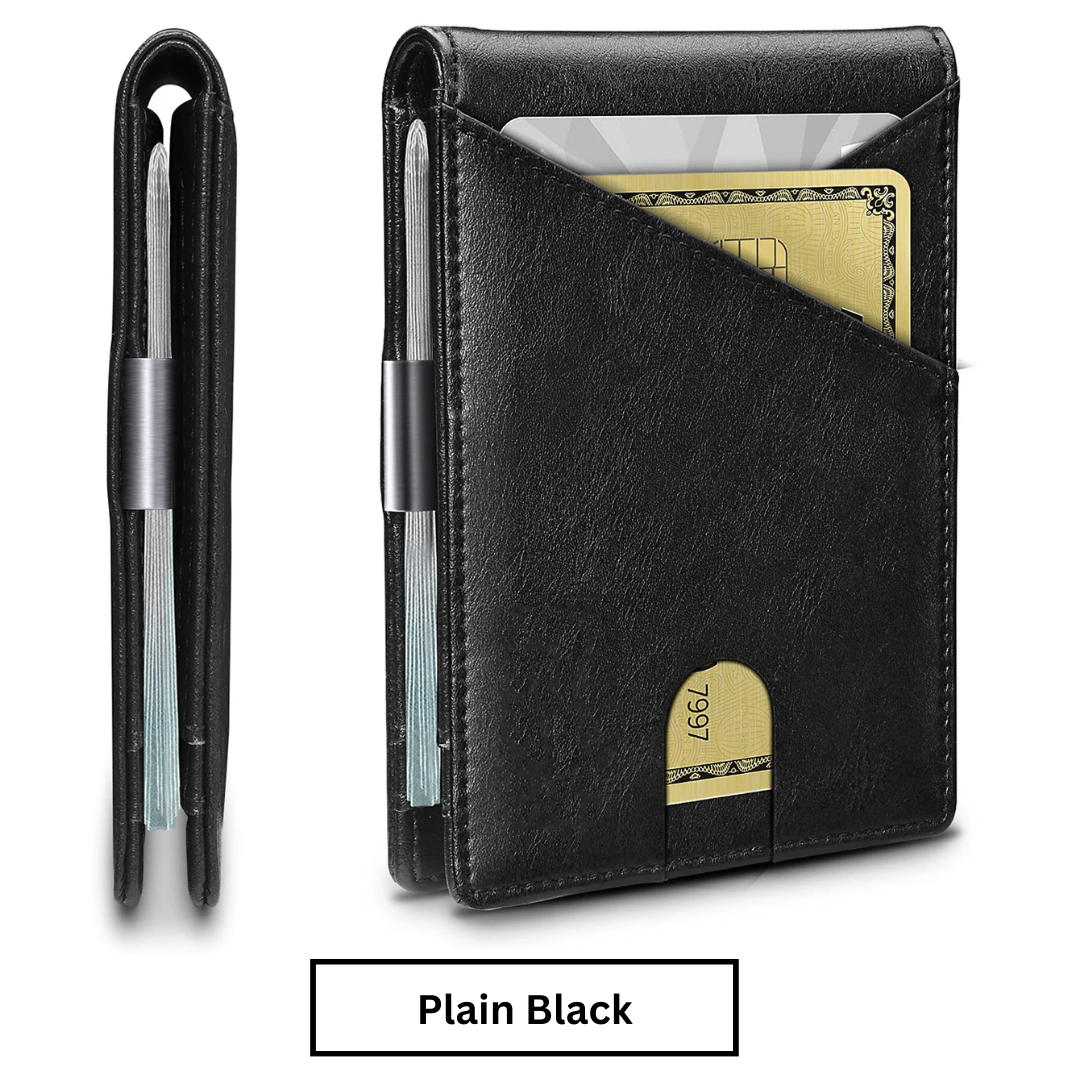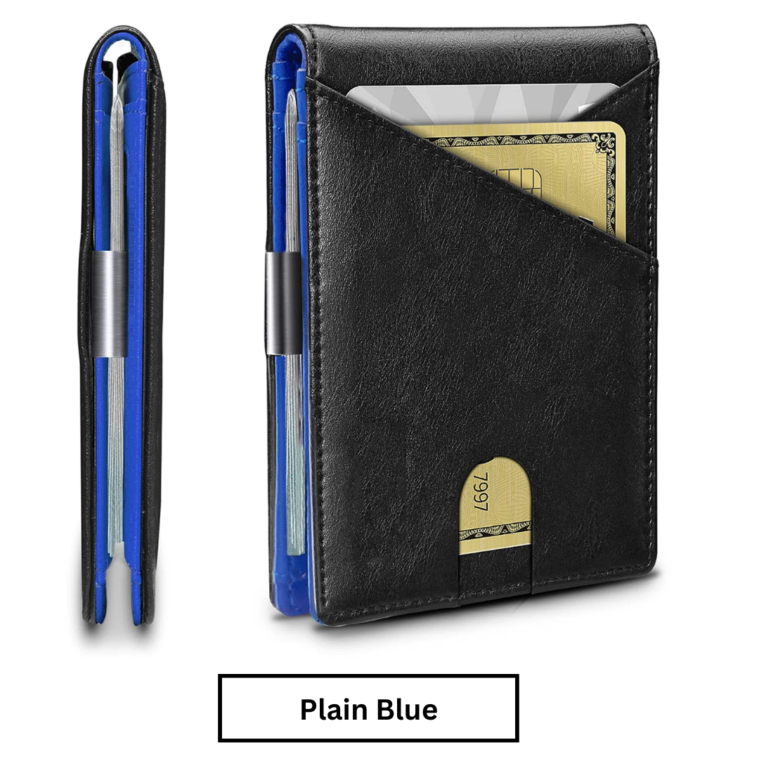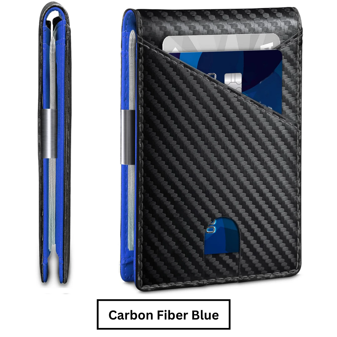 The RFID Anti-Theft Portable Card Holder Wallet is 0.6 inches thick, sized 4.5" x 3.3" with a money clip has 11 card slots which can store up to 12 cards. The thin wallet for men perfectly fits in your front pocket and is well-suited for everyday carry as a large-capacity but slim wallet.
