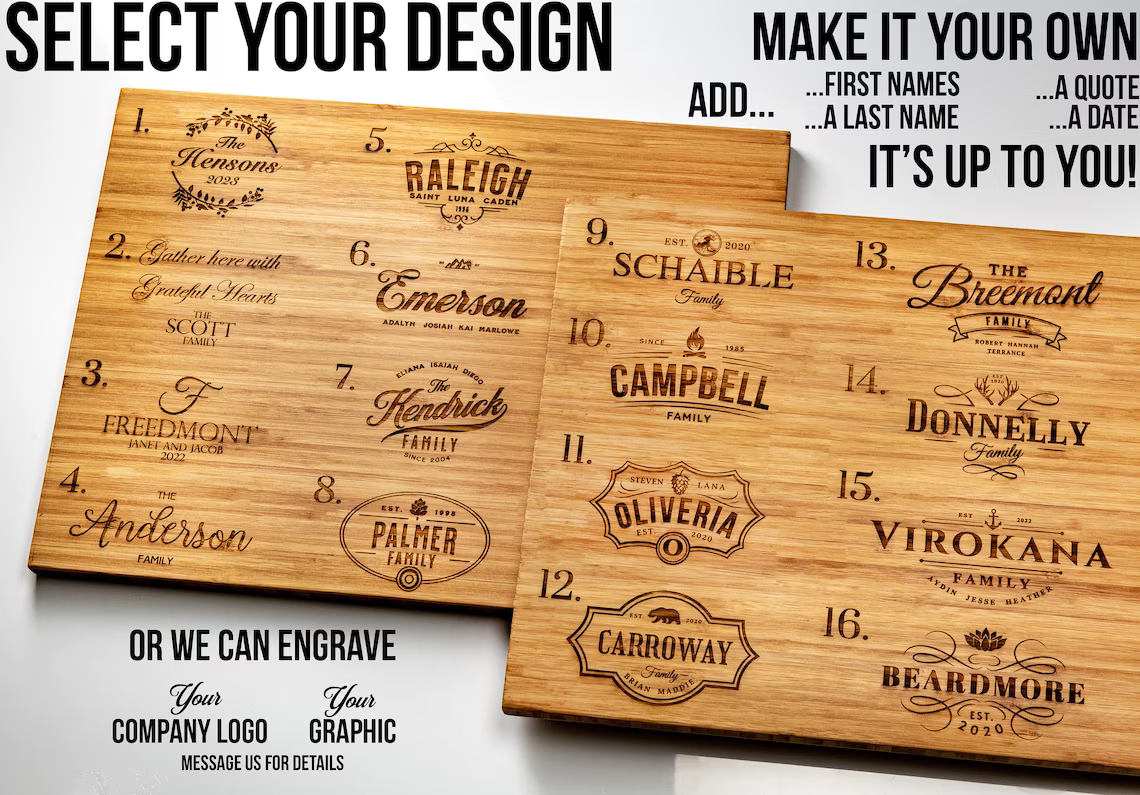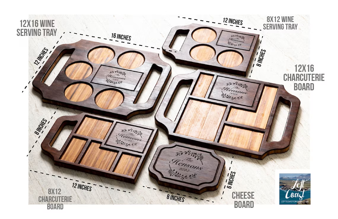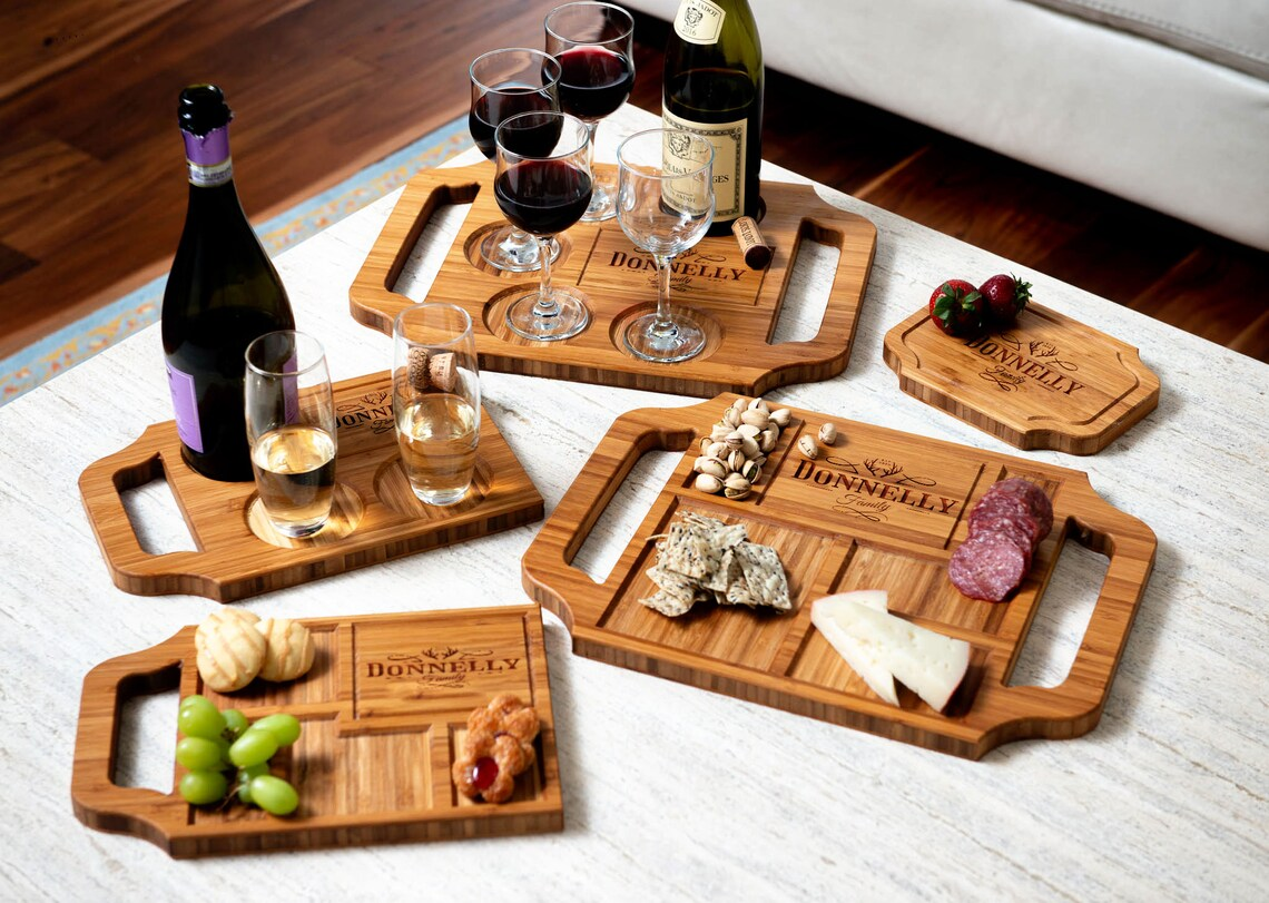 Serve your guests with style and panache with a Engraved Charcuterie or Wine Serving Tray Cutting Board. Each engraving is burned deep into the board for a quality look and feel.