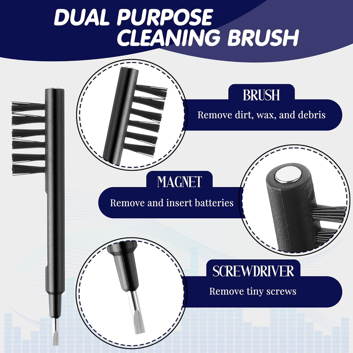 Dual Purpose Cleaning Tool: Compact yet powerful, this 55 mm (2.17 inch) brush clears wax and dust from tubes and vents and doubles as a tool for battery replacement, volume tuning, and small screw handling keeping your hearing aids clean, efficient, and long lasting